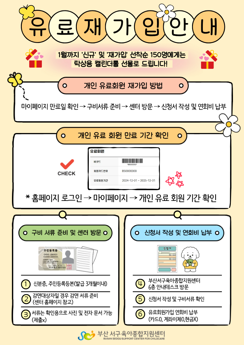 - 부산서구육아종합지원센터 유료회원 재가입 안내