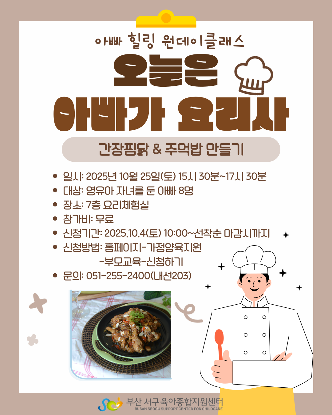 [안내] [아빠대상 부모교육] 오늘은 아빠가 요리사 - 간장찜닭 & 주먹