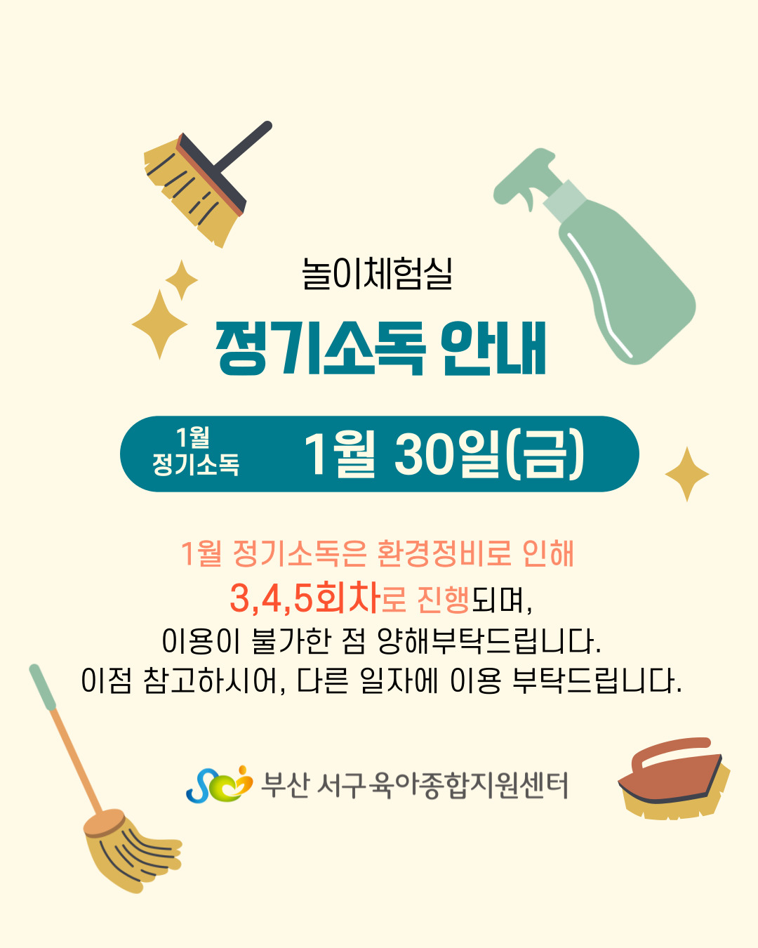 부산서구육아종합지원센터 놀이체험실 1월 정기소독 관련하여 안내드립니다.