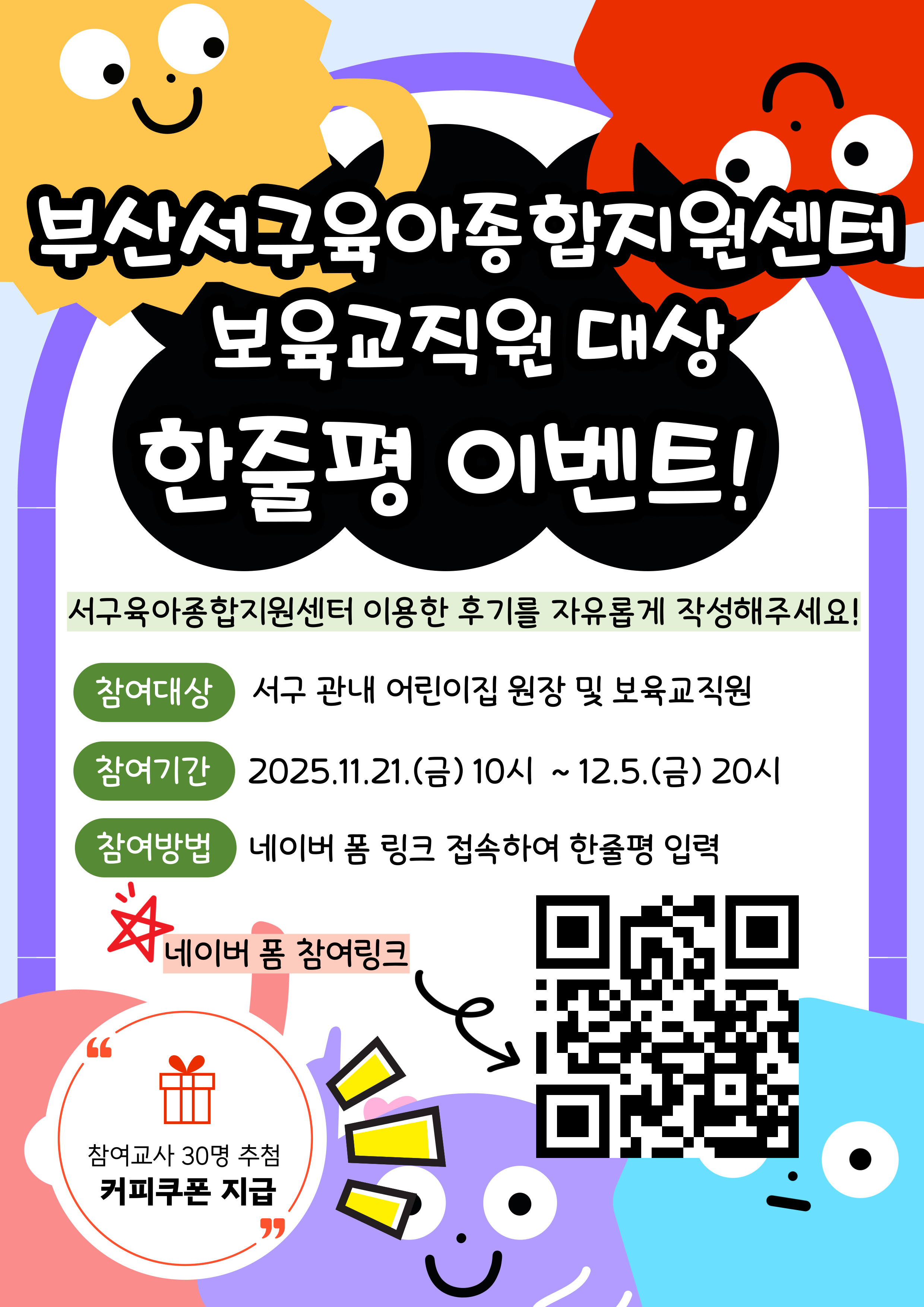 [안내] 보육교직원 대상 부산서구육아종합지원센터 한줄평 이벤트 안내