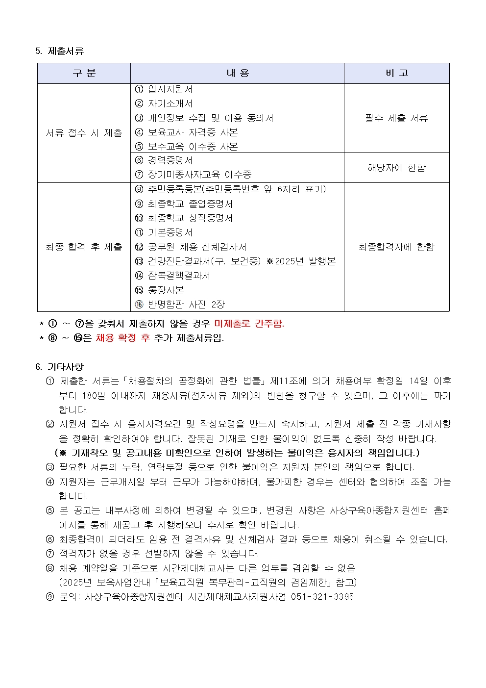 (붙임1)사상구육아종합지원센터 2025년 시간제대체교사 채용 공고문.hwp