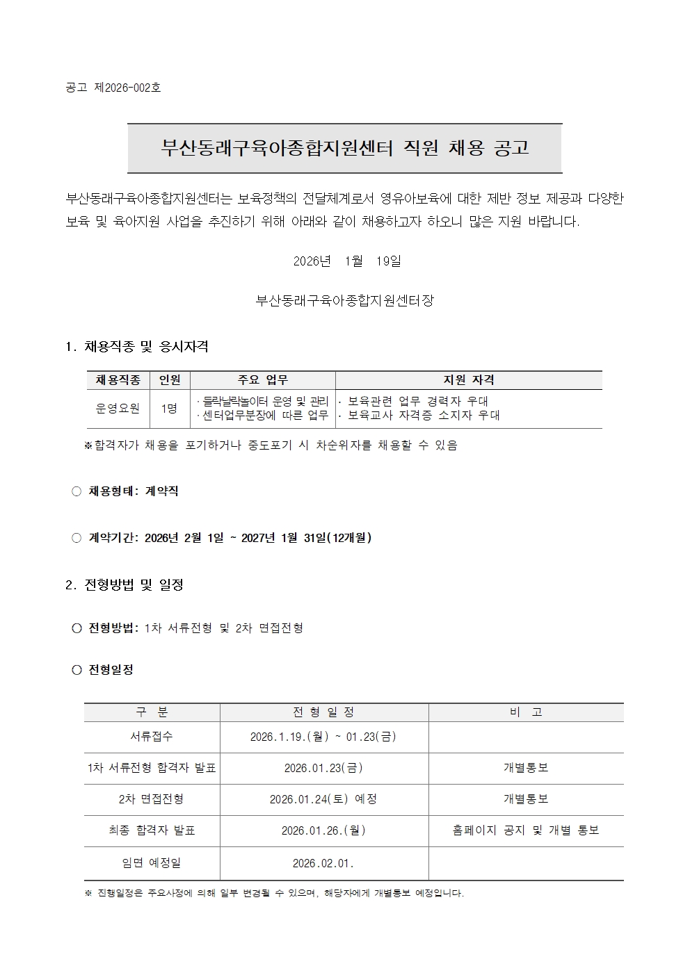 사상구육아종합지원센터(더자람터)주말유급도우미 채용 공고