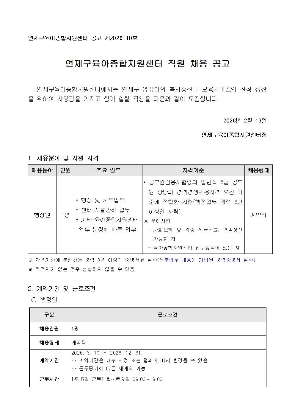 붙임1_연제구육아종합지원센터 직원(행정원) 채용 공고문 (1).hwp