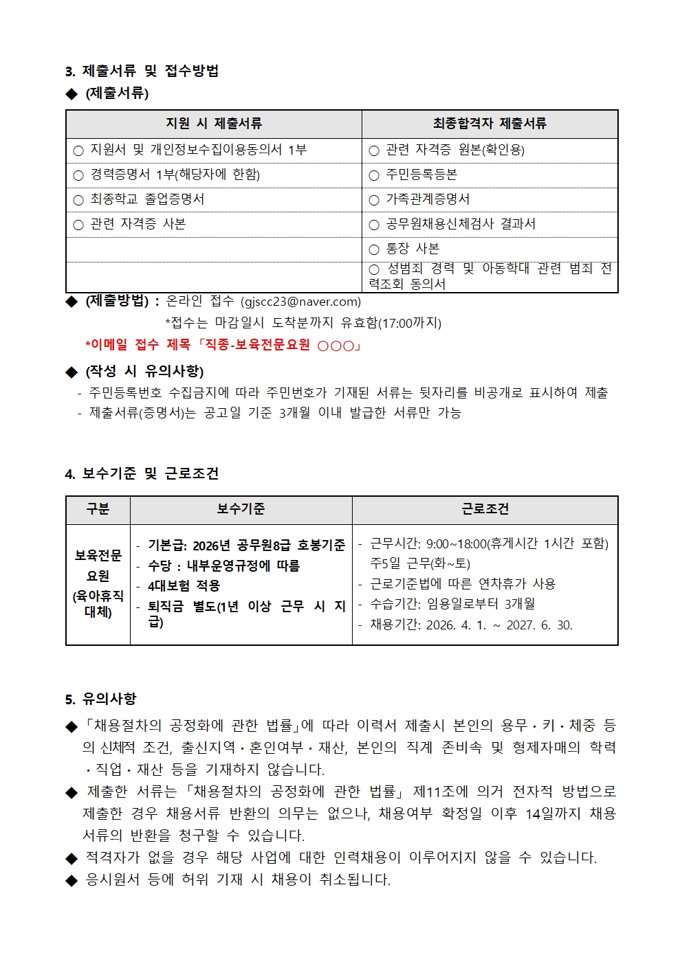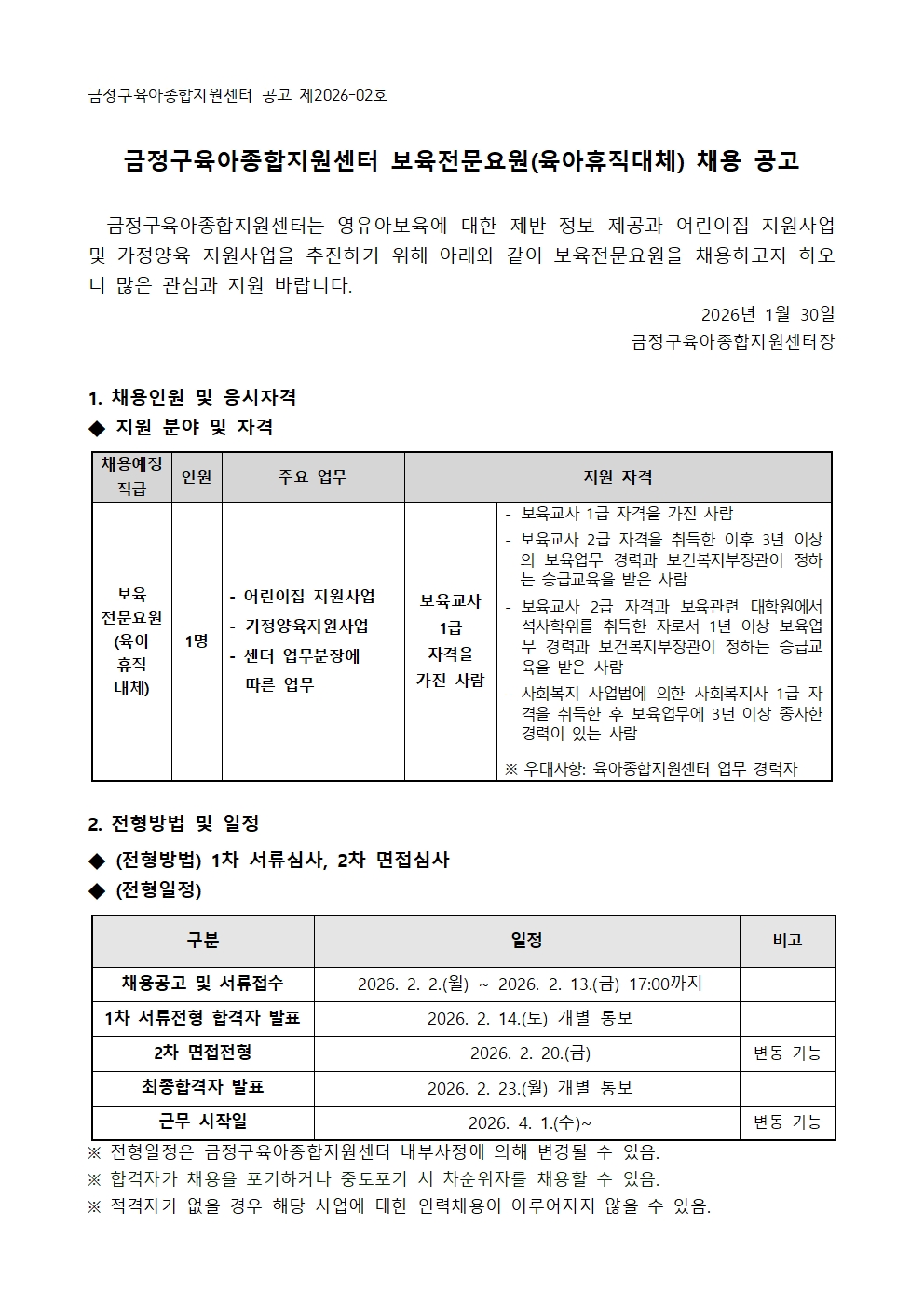 금정육종지26-015. 붙임1) 보육전문요원(육아휴직 대체) 채용 공고문.hwp