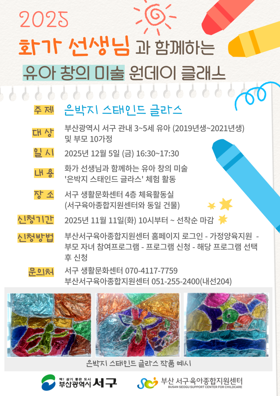 - [부모-자녀 체험 프로그램] 화가 선생님과 함께하는 유아 창의 미술 원데이 클래스 '은박지 스태인드..