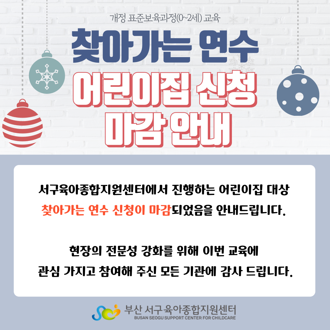 - 어린이집 대상 0~2세 표준보육과정 찾아가는 연수 추가 신청 마감 안내 2025-12-31