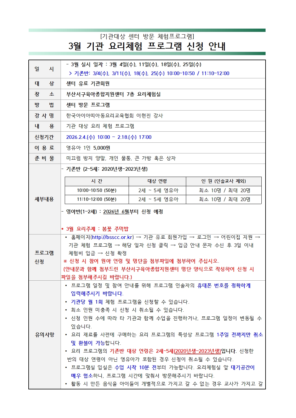 [부산서구육아종합지원센터] 요리체험실 이용명단 양식.hwp