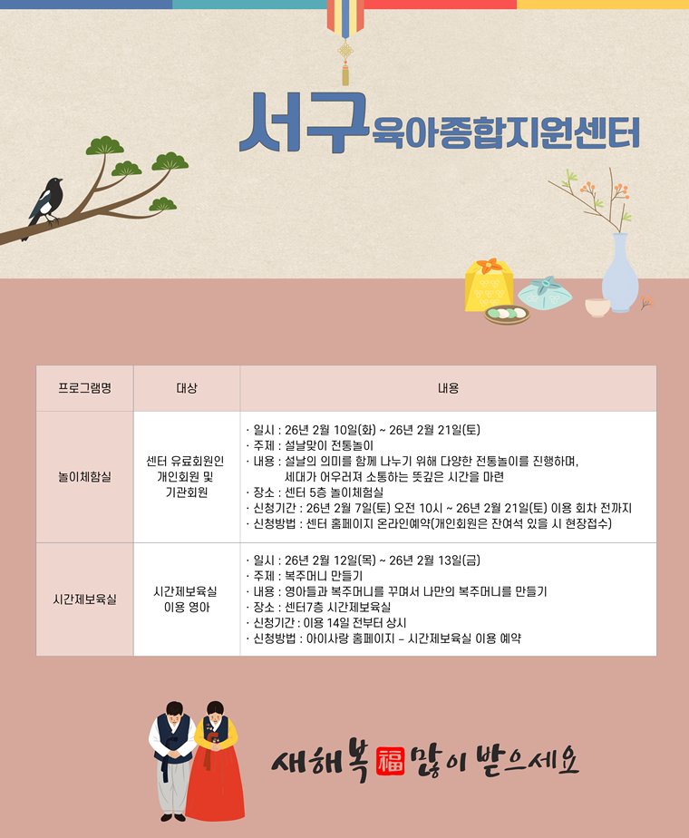 [안내] 2026년 부산광역시 및 구군육아종합지원센터 설날 맞이 제공 프로그램 안내