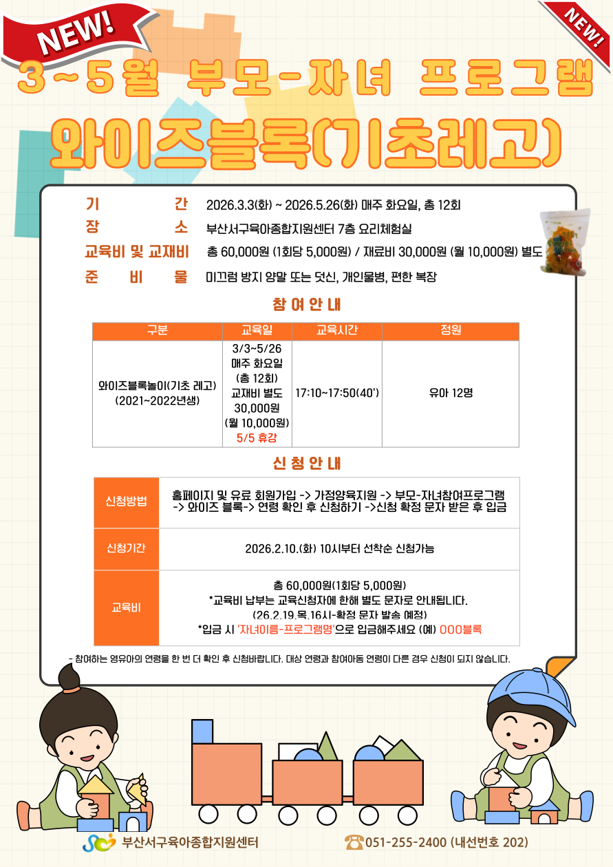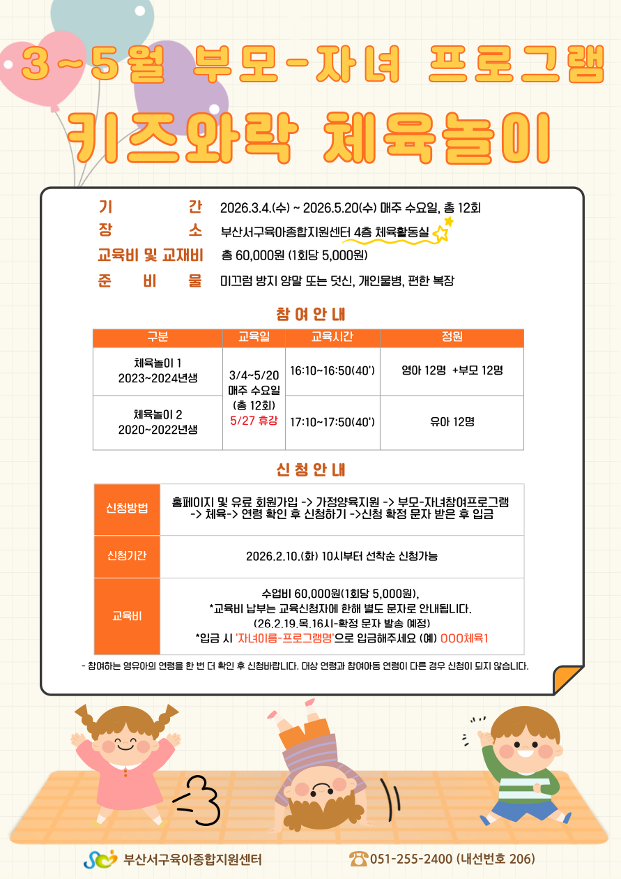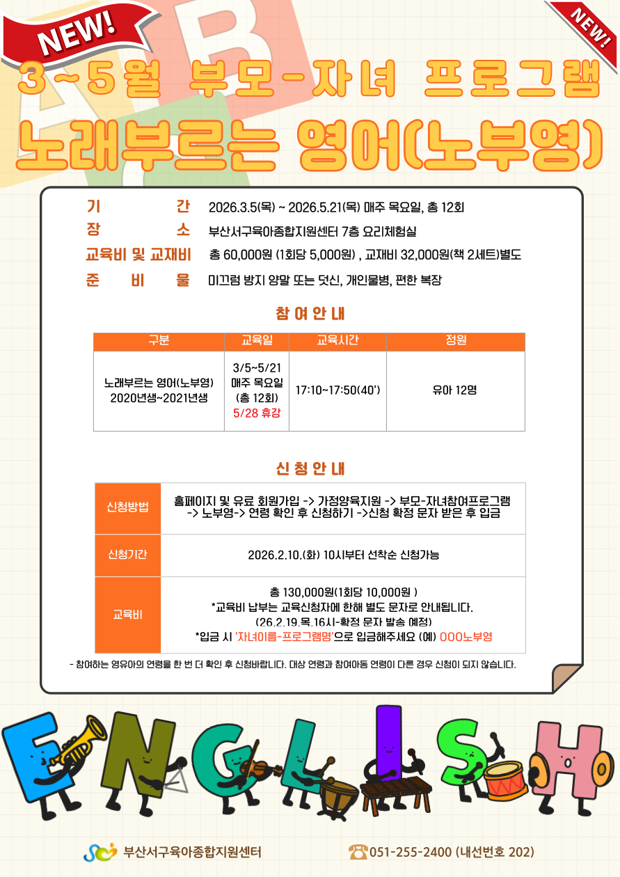 [안내] 3~5월 부모-자녀 체험 프로그램 신청 안내
