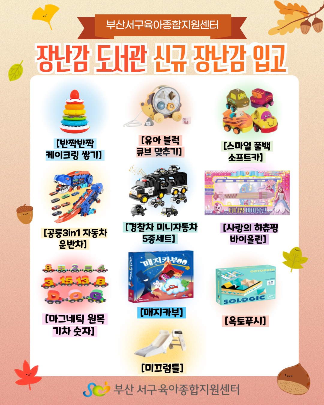 장난감 도서관 '신규 장난감'이 입고될 예정입니다.
