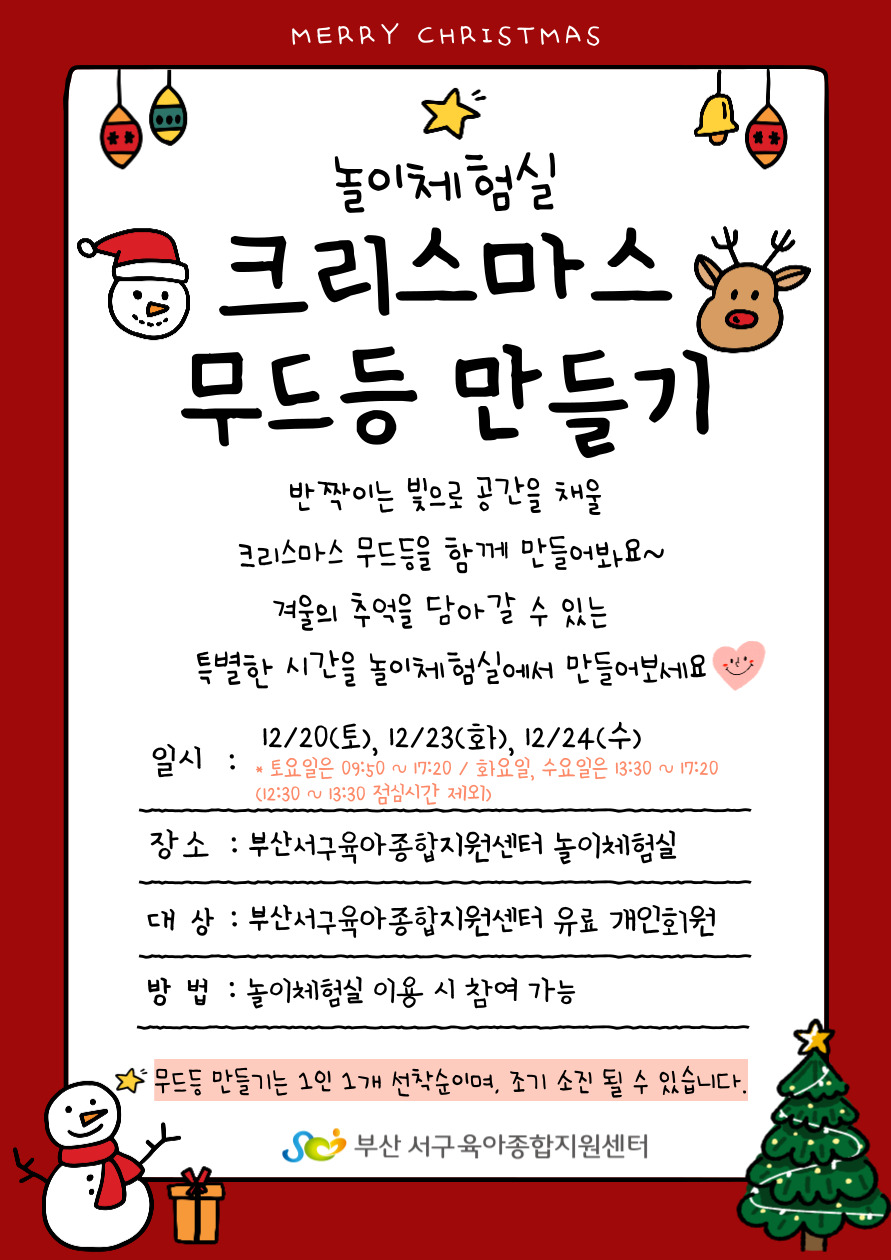 부산서구육아종합지원센터 놀이체험실에서 크리스마스를 맞이하여
