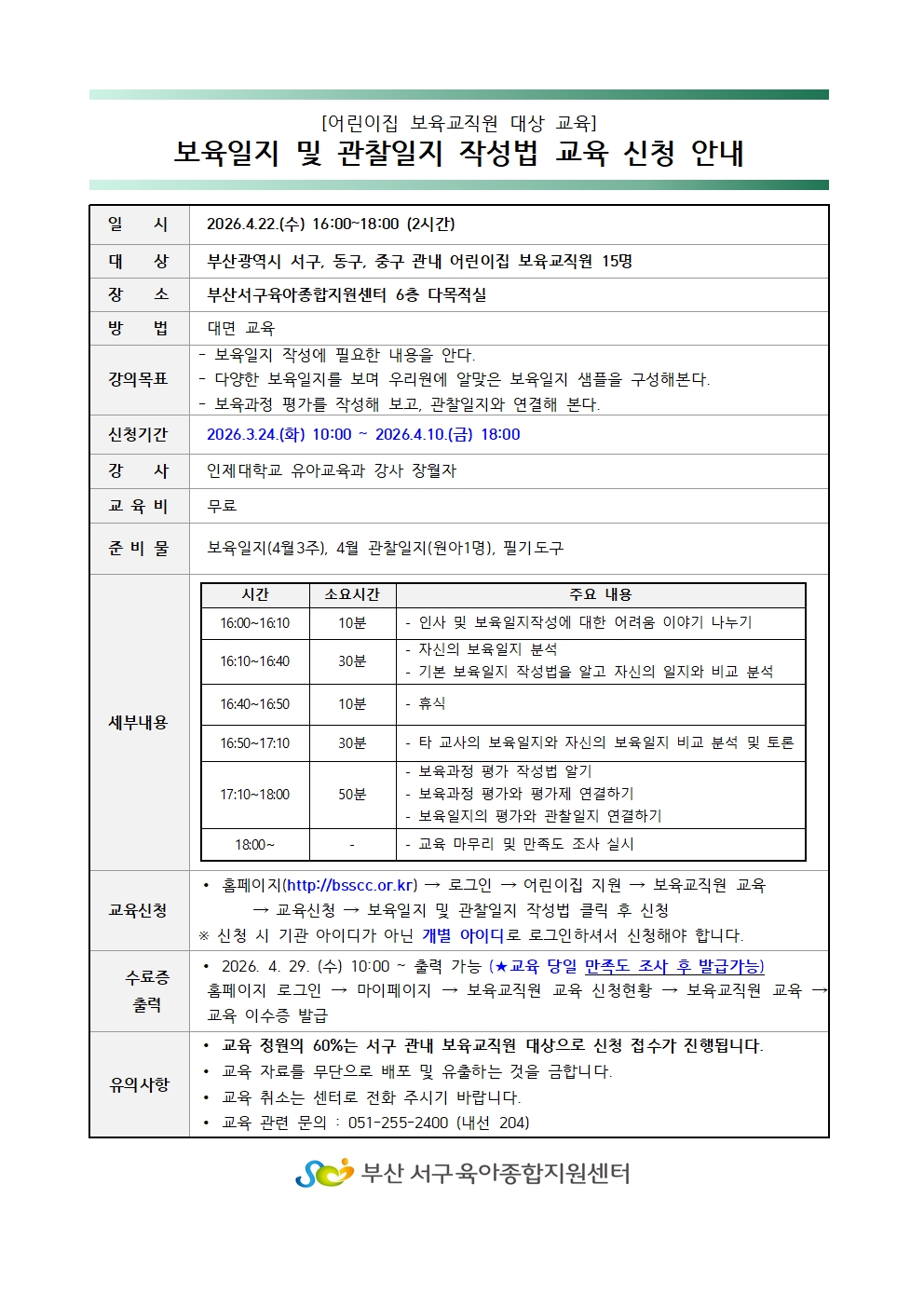 4/22(수)에 진행될 보육일지 및 관찰일지 작성법 교육을 안내드립니다!