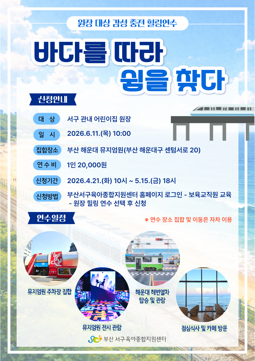 부산 서구 어린이집 원장 대상 힐링 연수- 바다를 따라 쉼을 찾다 를 안내 드립니다.