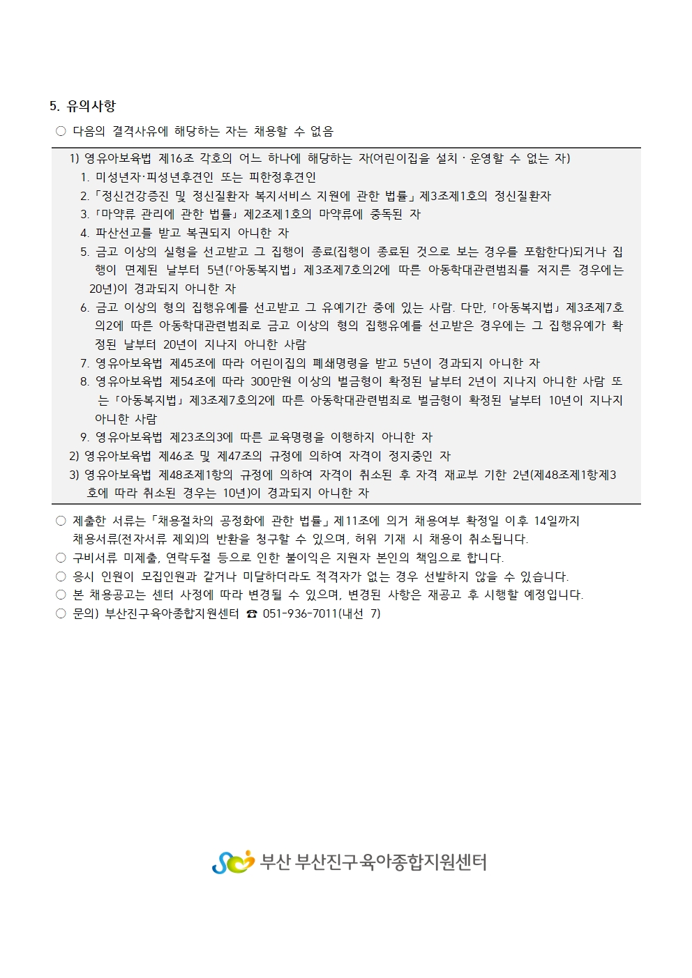 붙임 1. 부산진구육아종합지원센터 시간제보육 보조교사 채용 공고문 (1).hwp