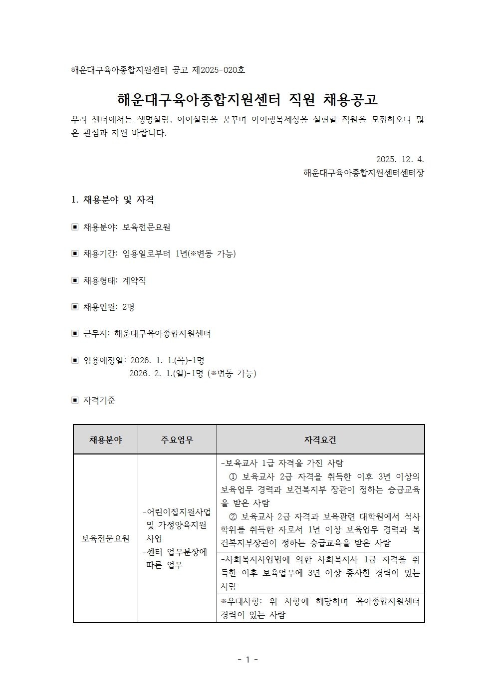 [2025-020]보육전문요원 채용 공고 (1).hwp