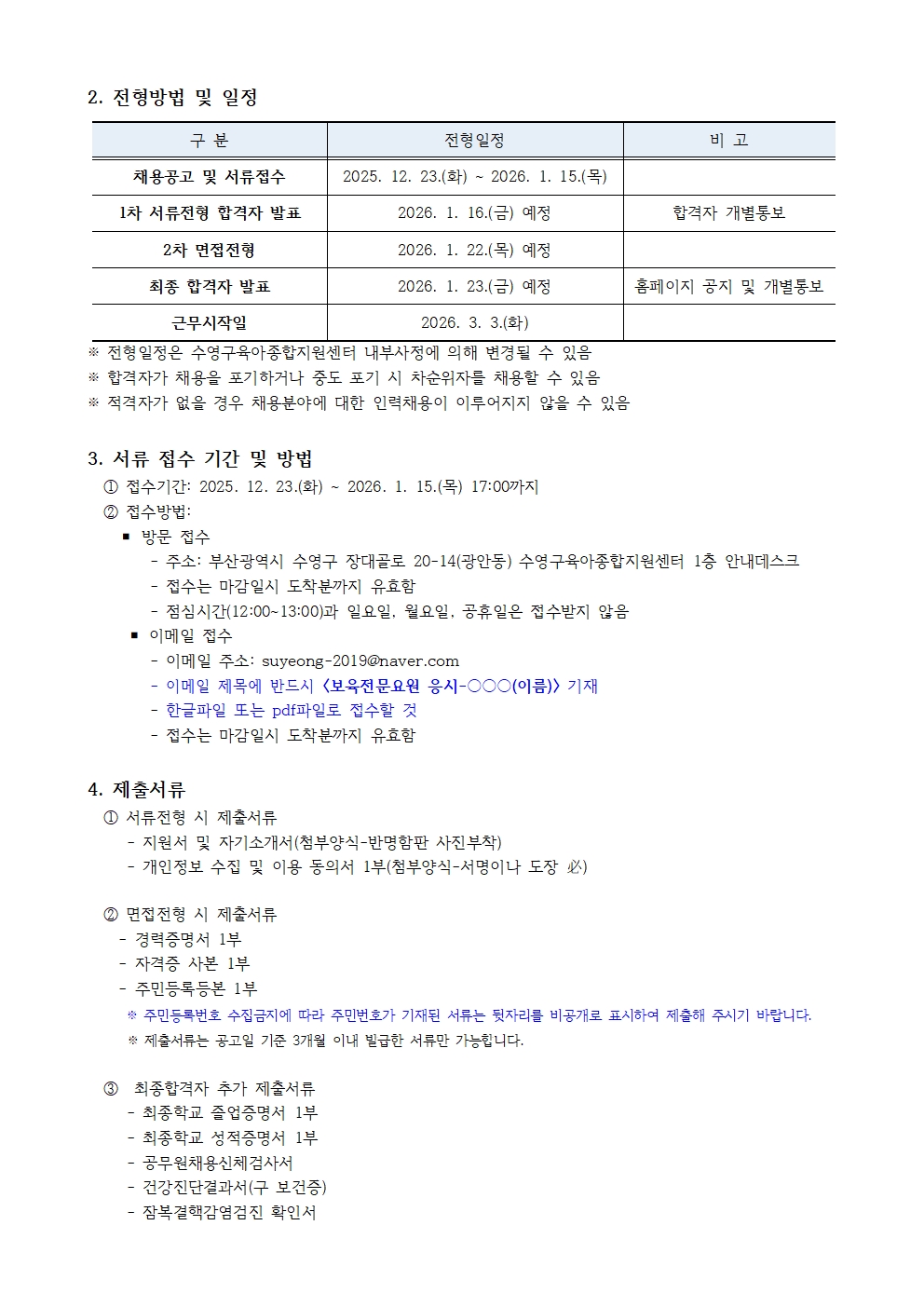 [붙임1] 수영구 육아종합지원센터 채용공고문(보육전문요원).hwp