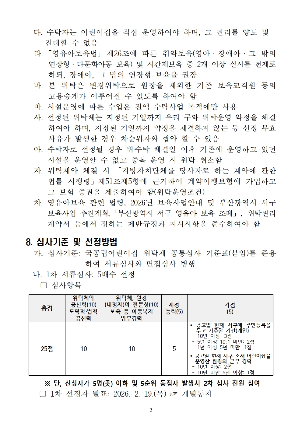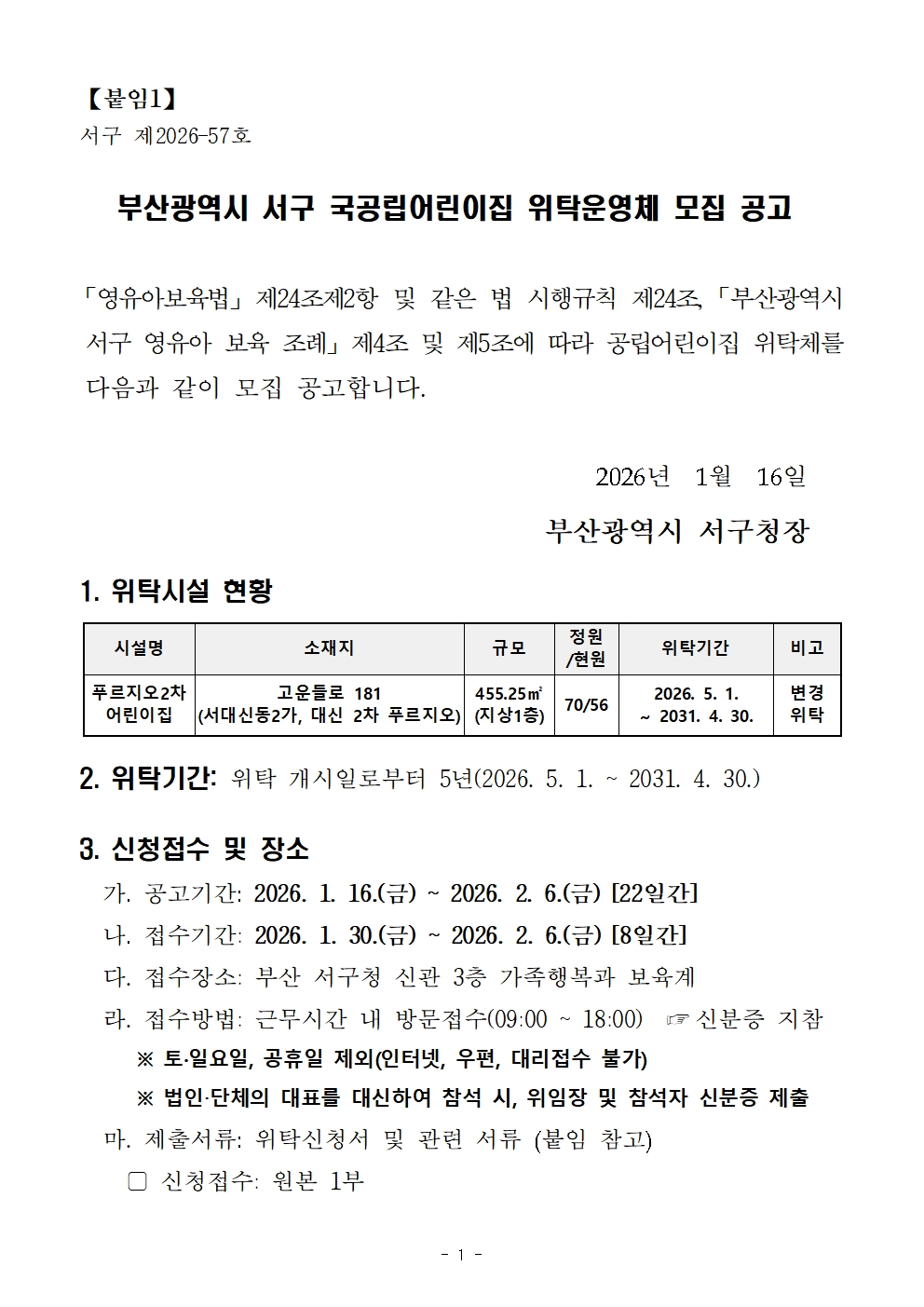 (붙임1) 부산광역시 서구 공립어린이집 위탁운영체 모집 공고.hwp