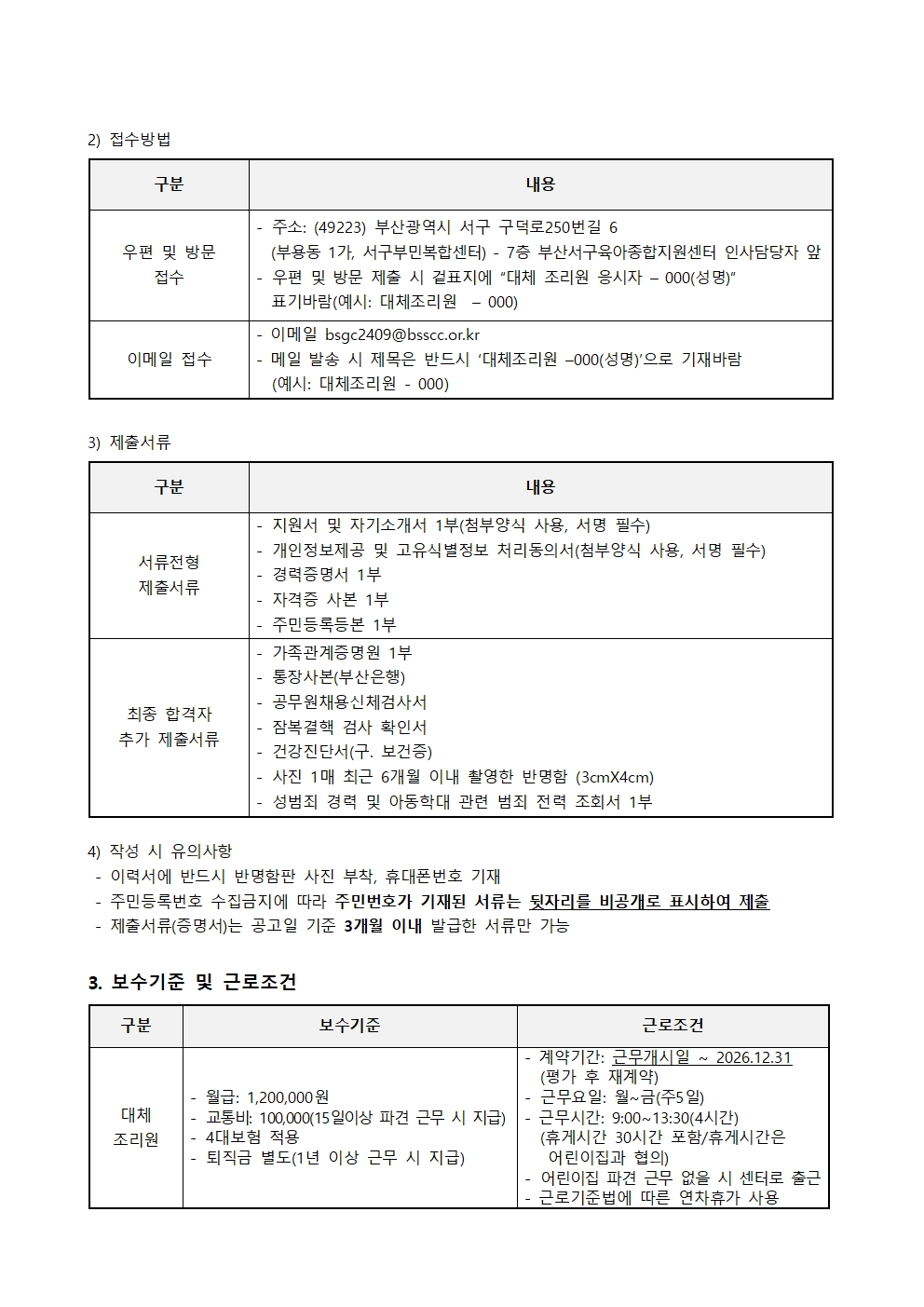 붙임1.부산서구육아종합지원센터 대체조리원 채용 재공고.hwp