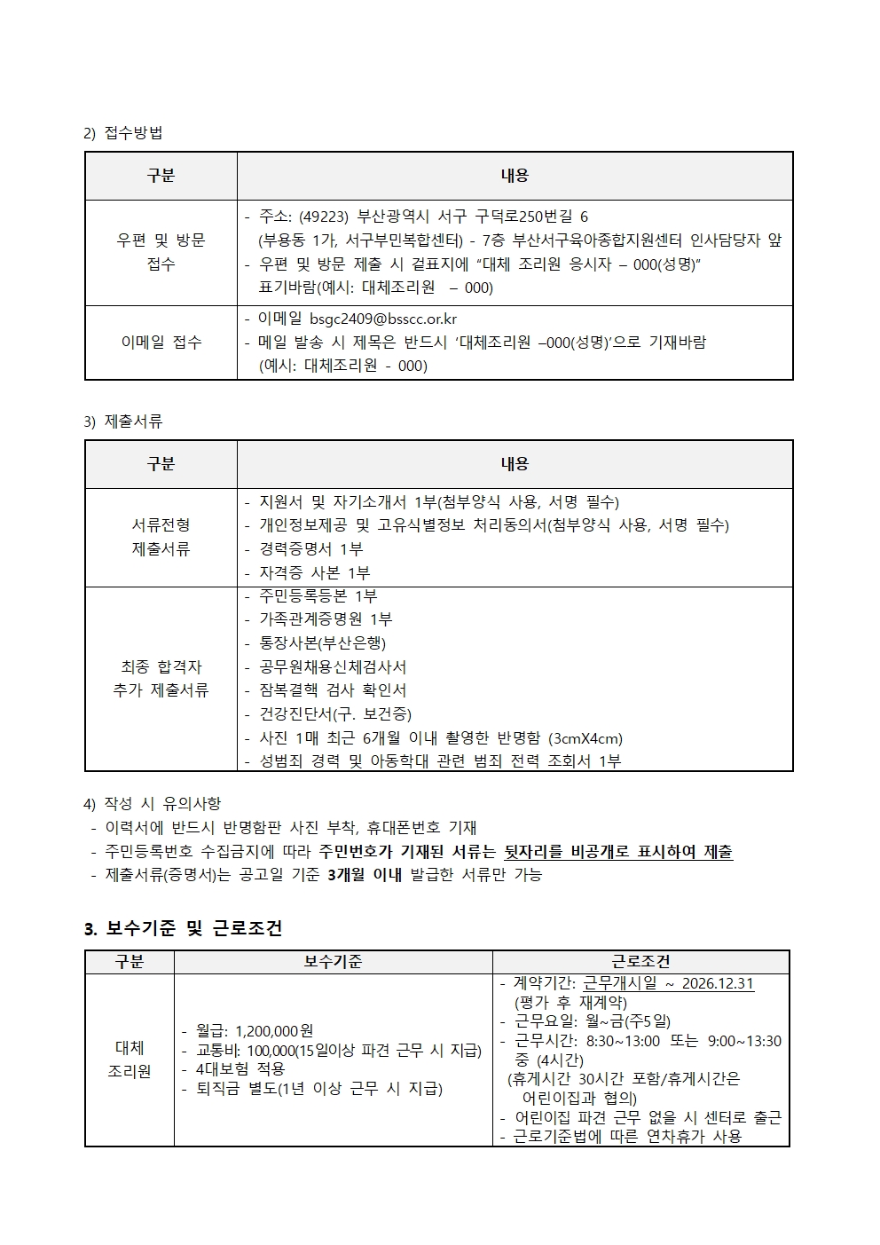 부산서구육아종합지원센터 대체조리원 채용 재공고.hwp