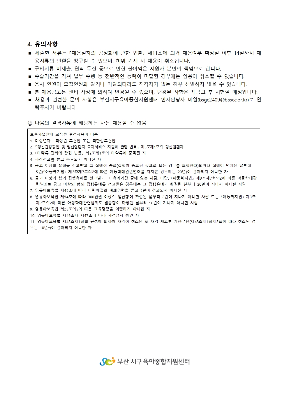 부산서구육아종합지원센터 대체조리원 채용 재공고