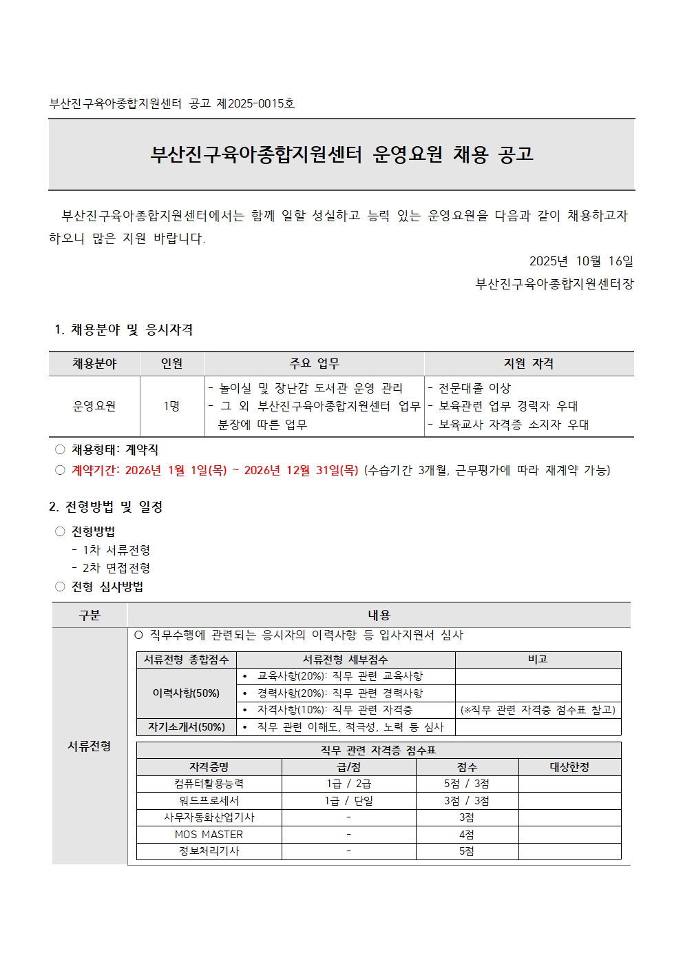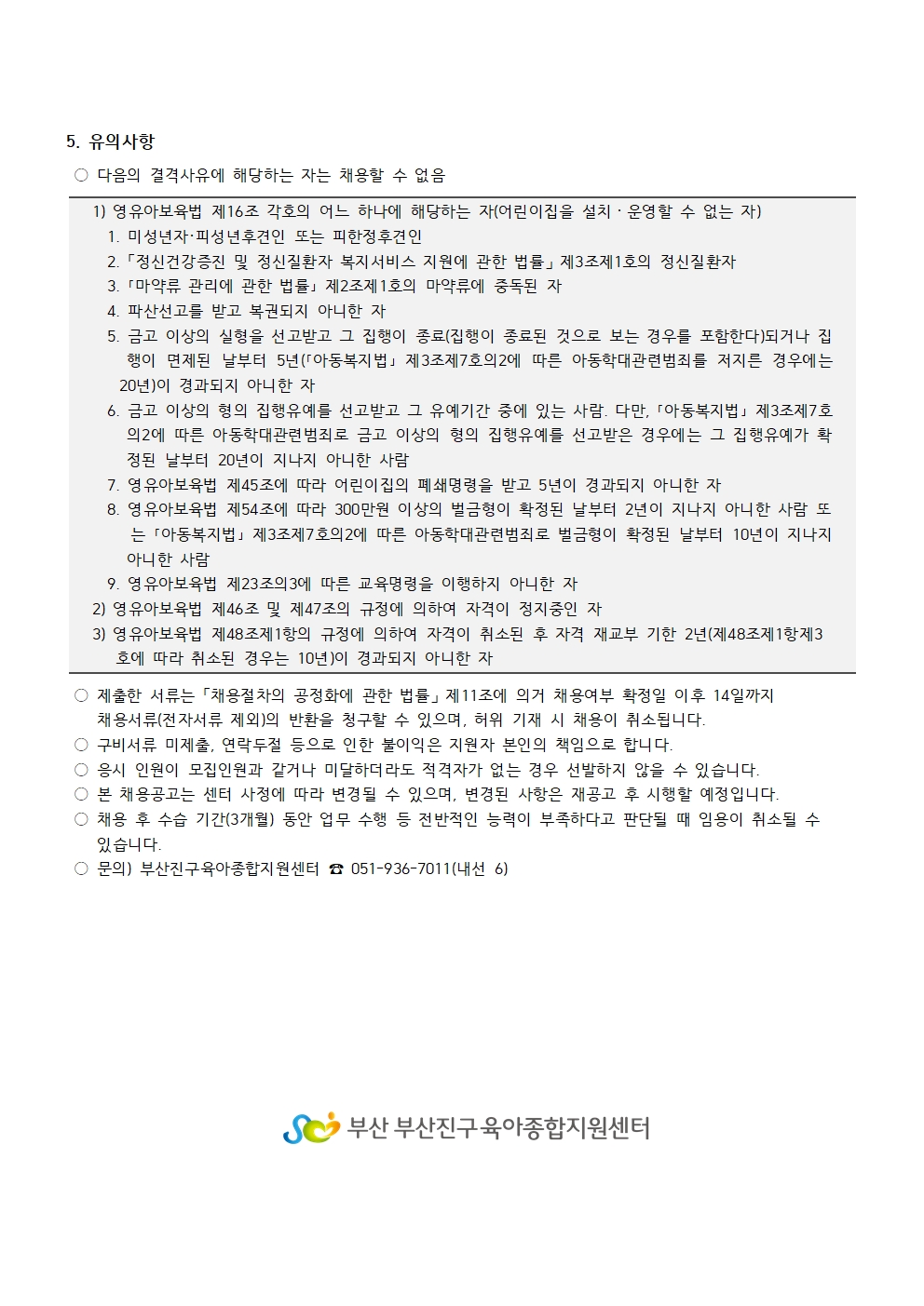 부산진구육아종합지원센터 직원 채용 공고