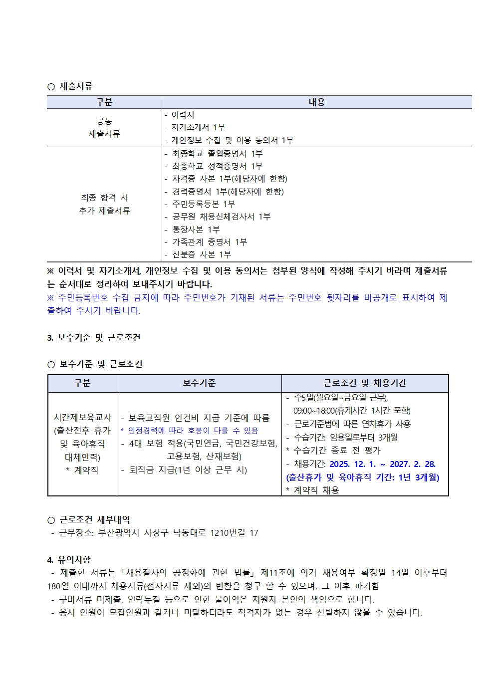 부산동래구육아종합지원센터 직원 채용 재공고