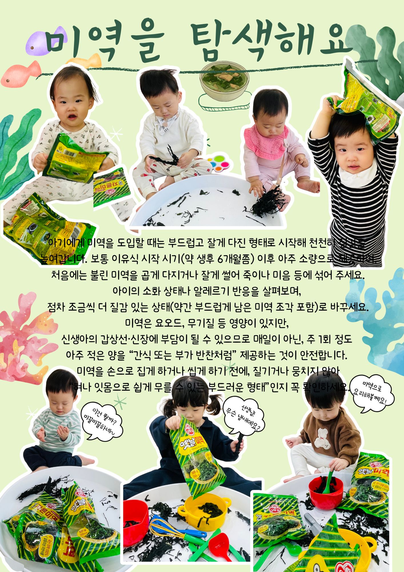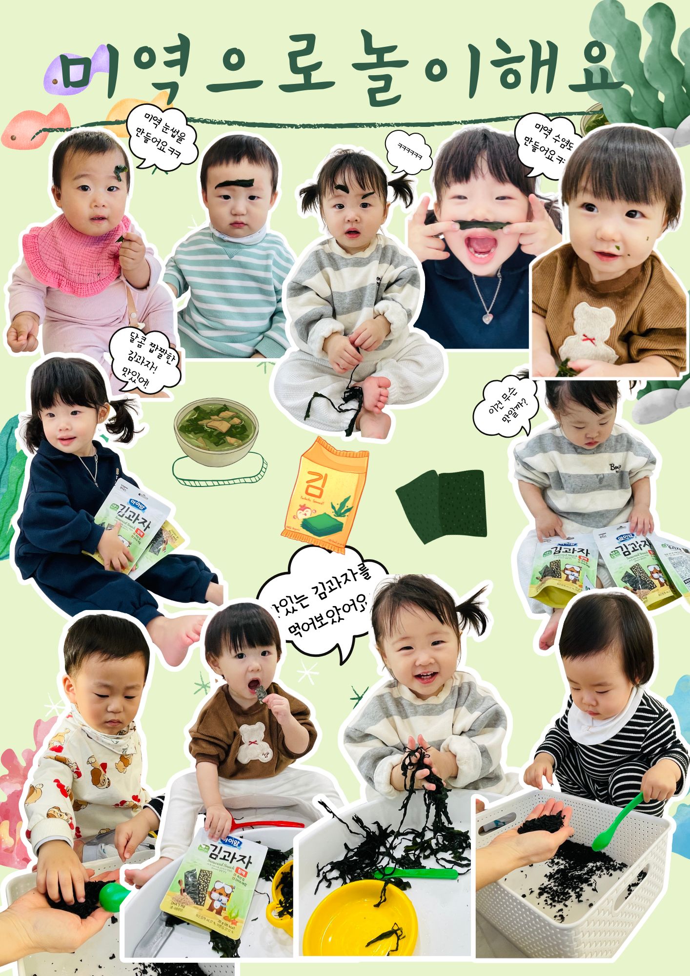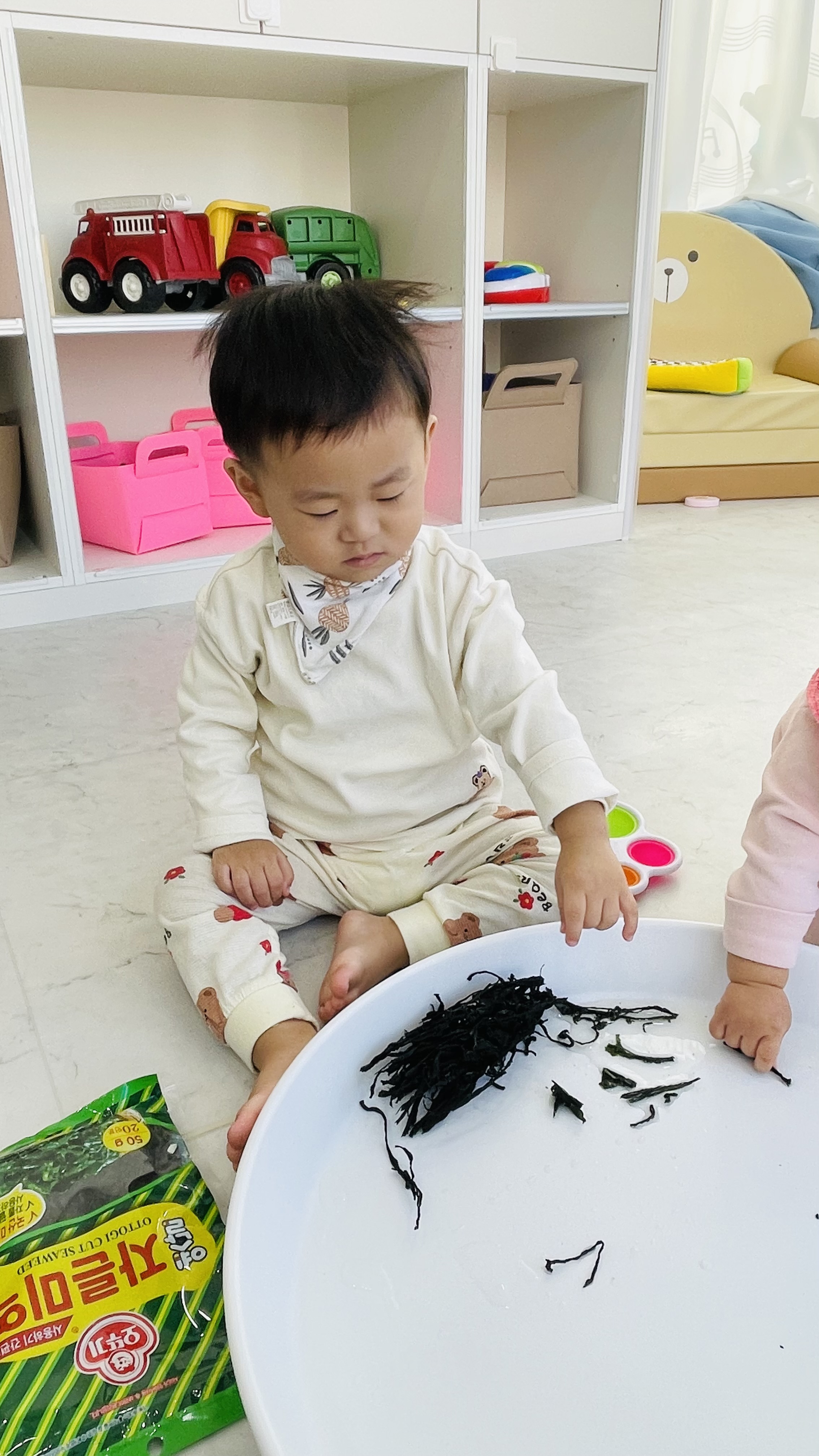 부산서구육아종합지원센터 시간제보육실에서 11월 중점활동으로 [미역]을 주제로 오감 탐색놀이를 진행했어요!