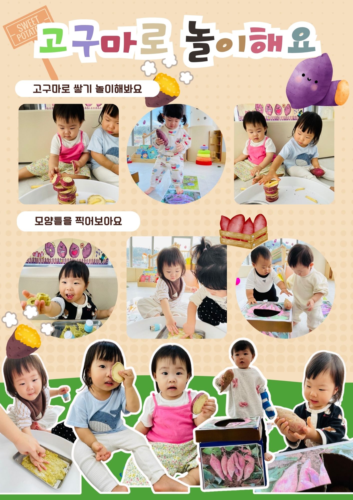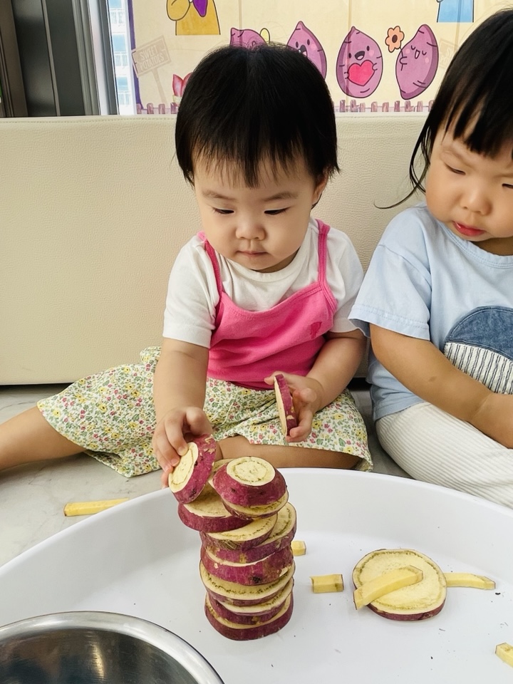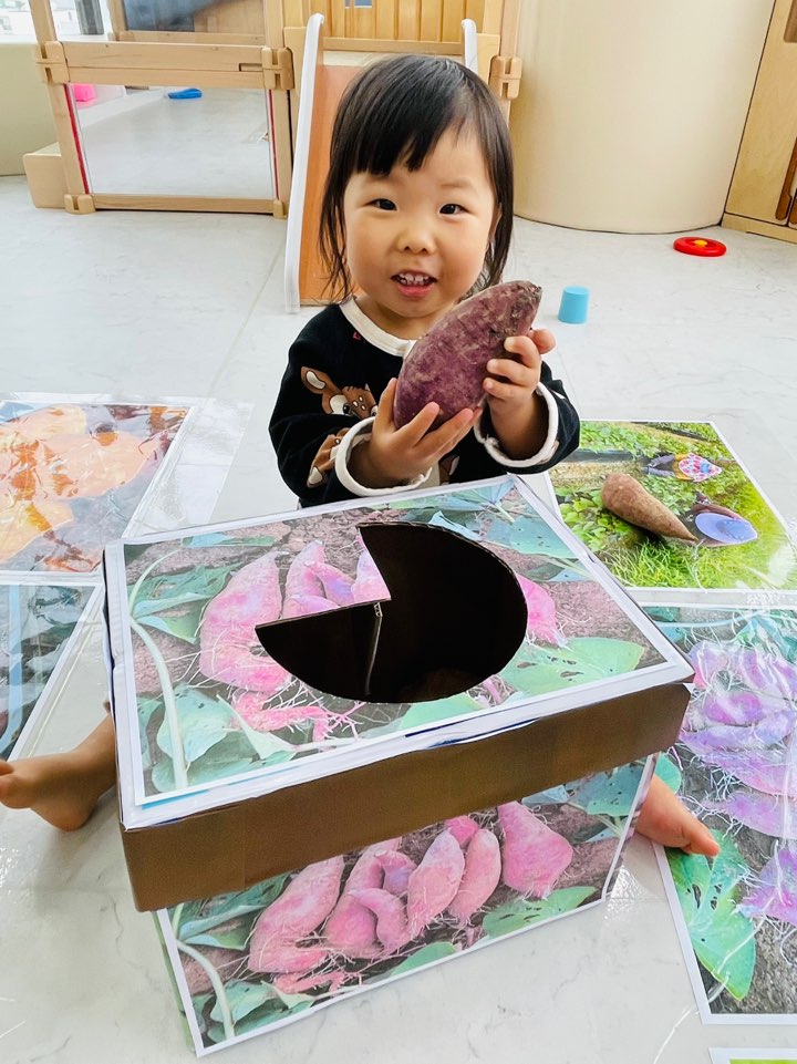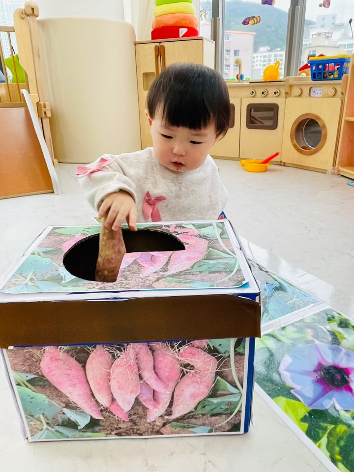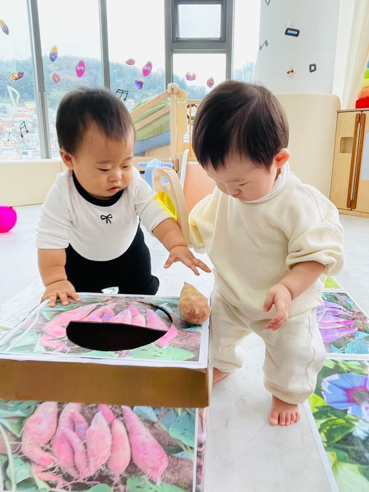 아이들과 함께 부드럽고 달콤한 고구마를 직접 만져보며 촉감을 탐색했답니다.