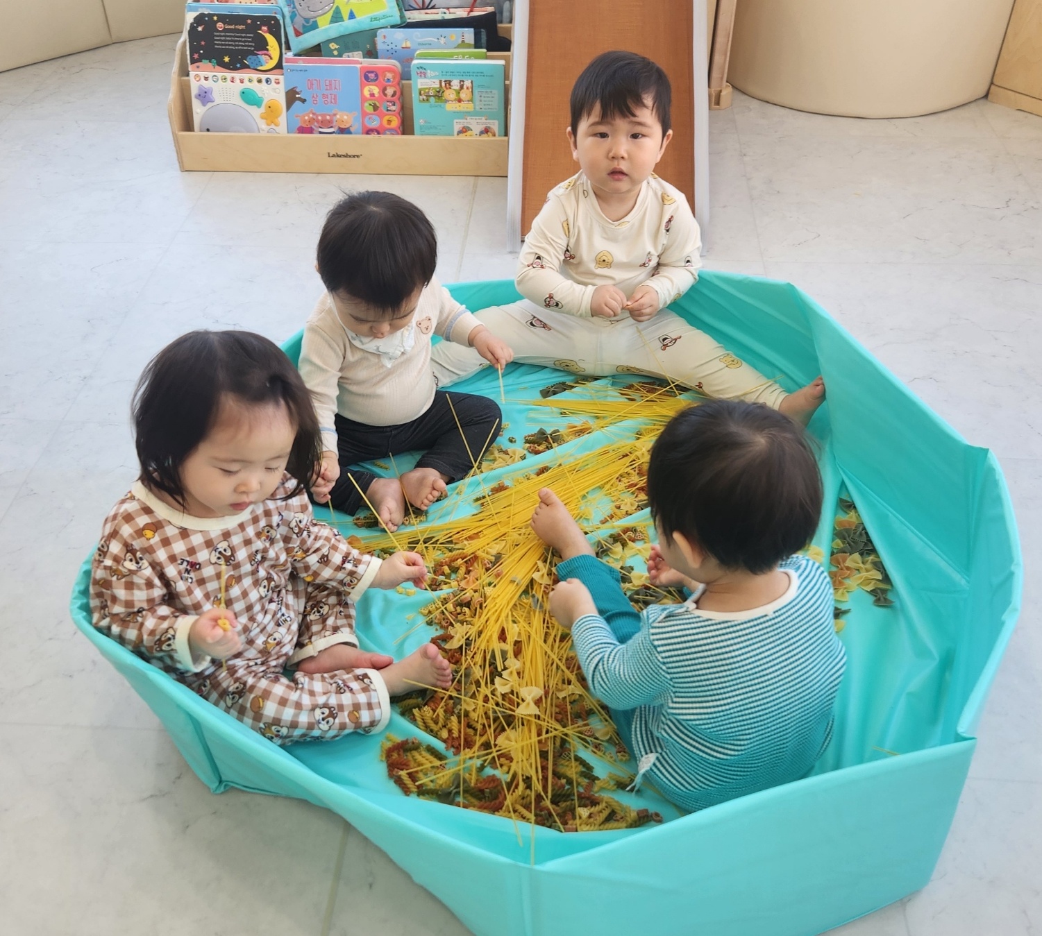 시간제보육실에서는 2월 중점활동으로 스파게티를 이용한 활동을 진행해보았습니다!