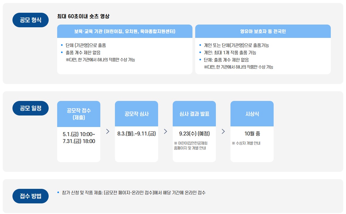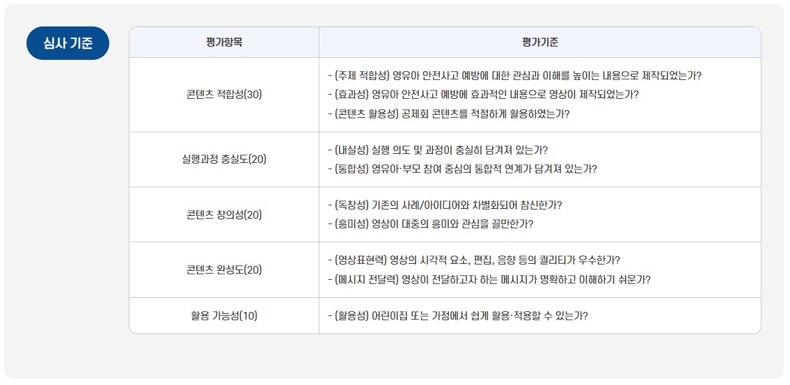 영유아 안전에 대한 사회적 공감대를 형성하고 안전 의식을 제고하고자 매년 공모전을 진행하고 있습니다.